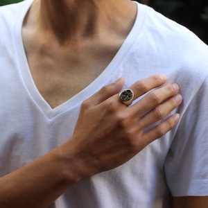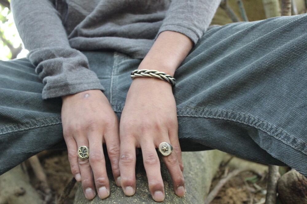 正面部分は真鍮を使用し程よい重さと厚みのあるsilver Ring を合わせた存在感のあるアイテム