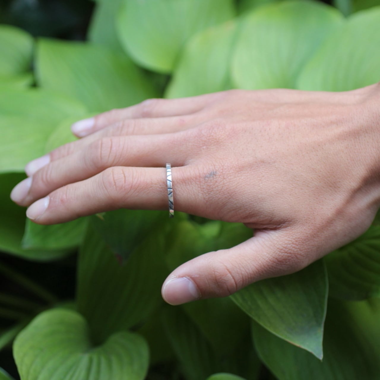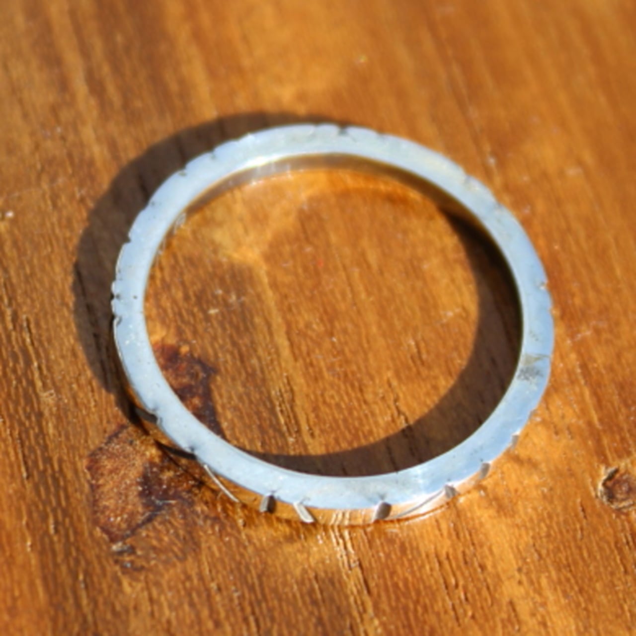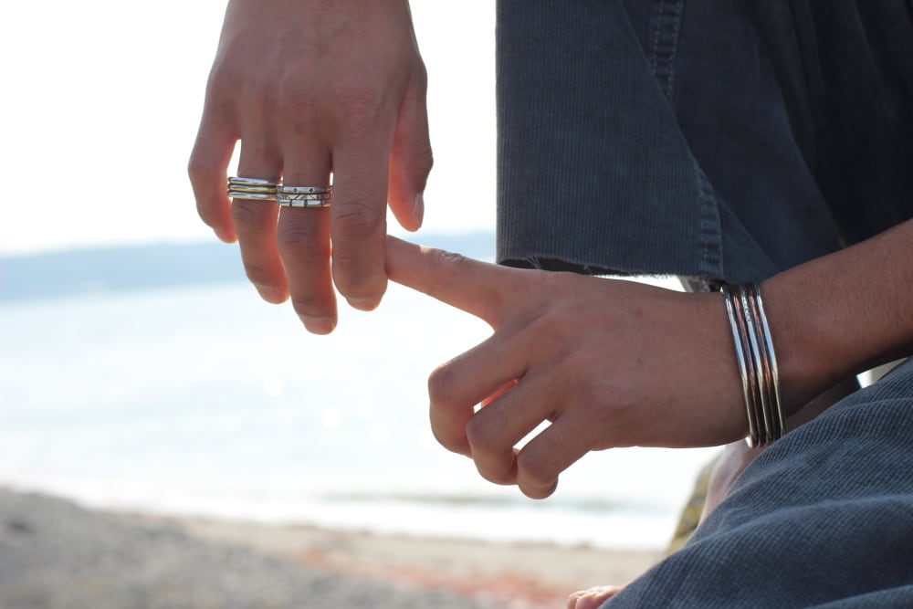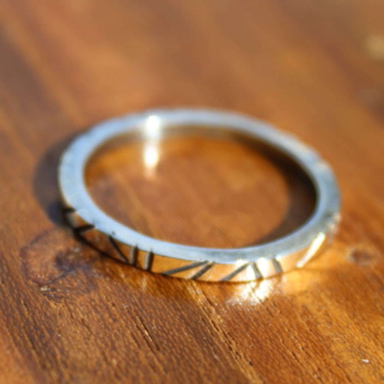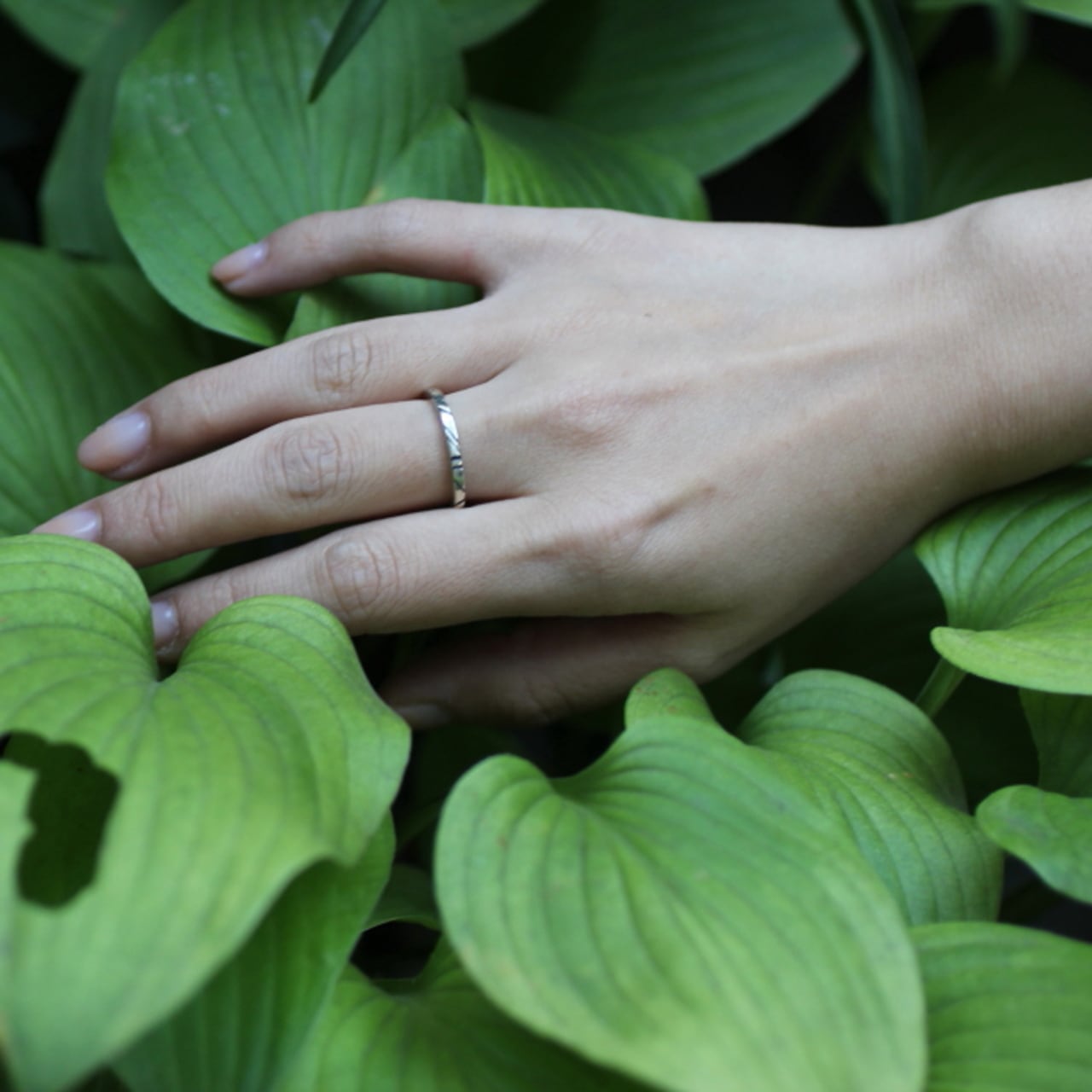 細身でシンプルなデザインなので重ね着けにも最適なリングです。
