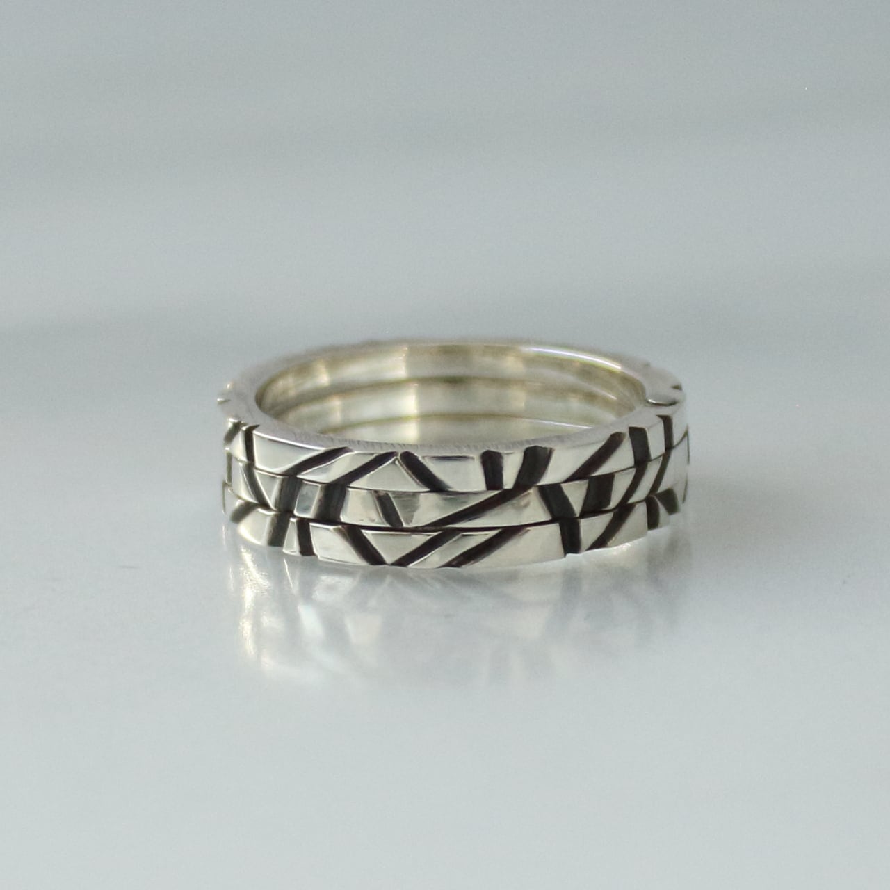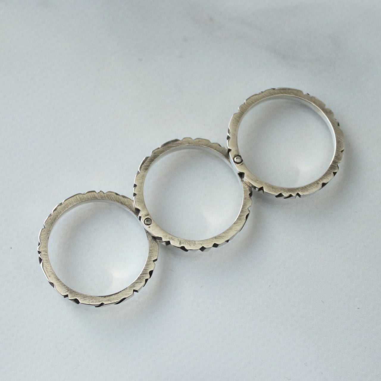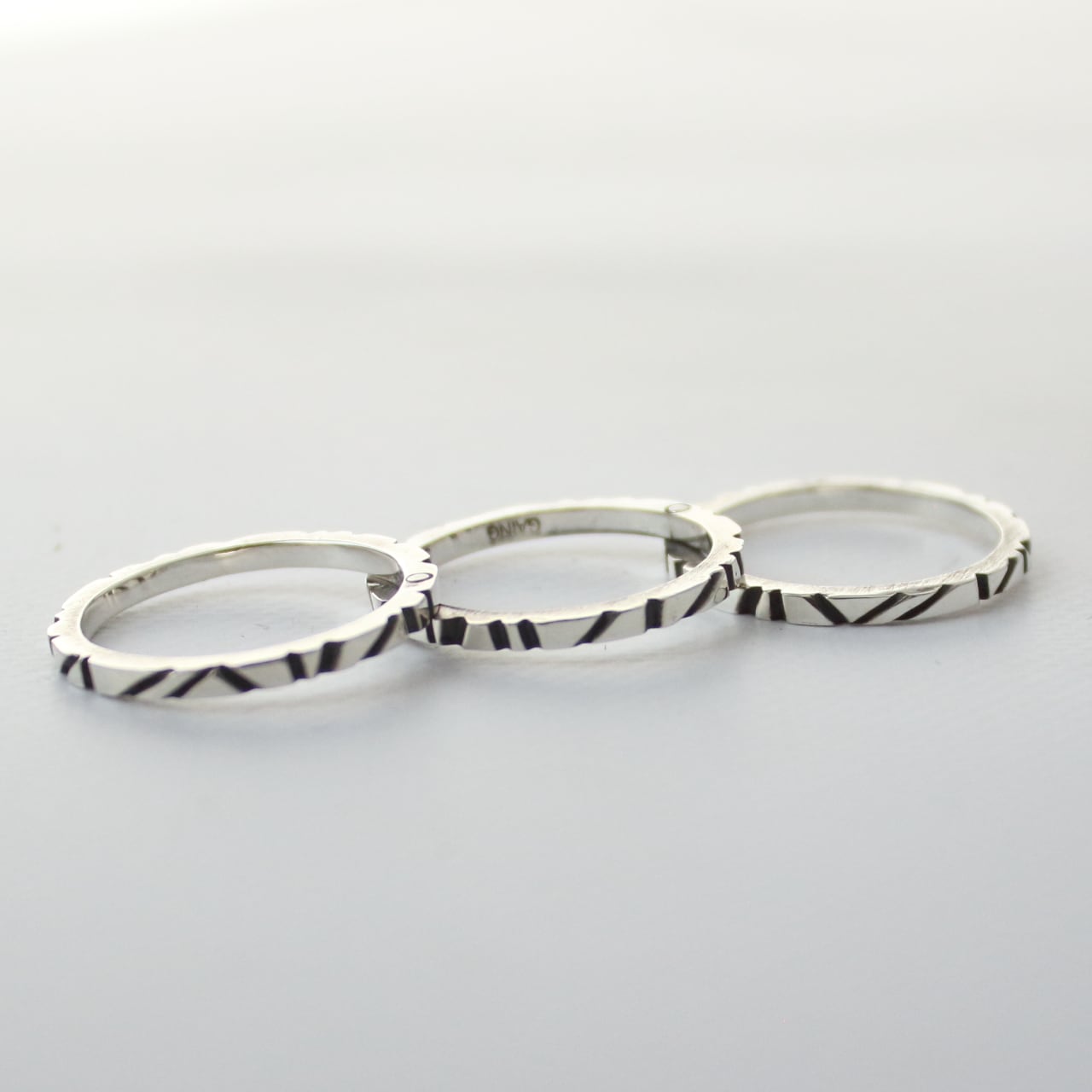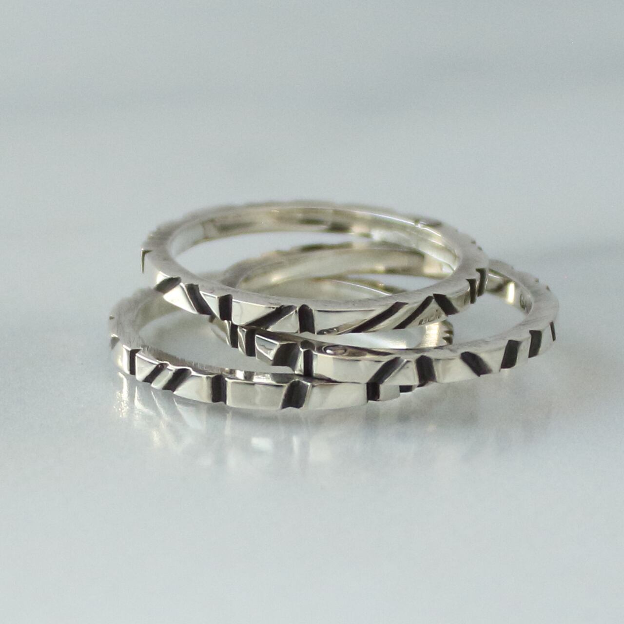 2連,3連,4連のリングは重なり合う部分を「カシメ」という彫金技法を