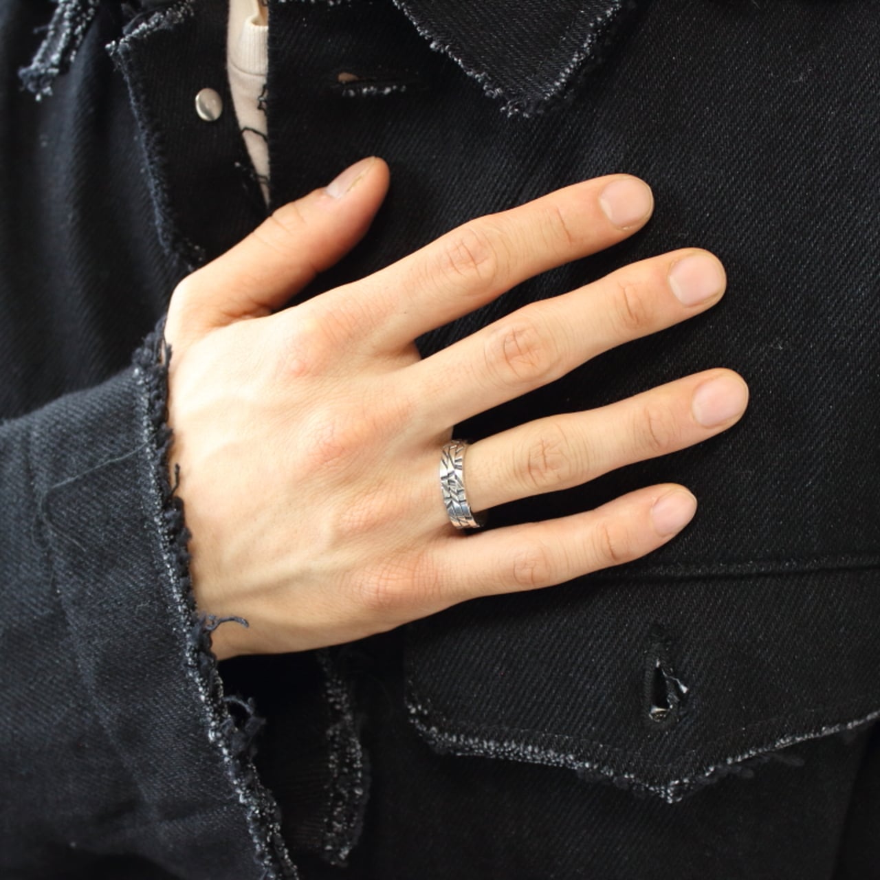 シンプルに着ければ幅広のリング
